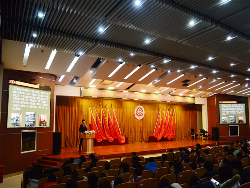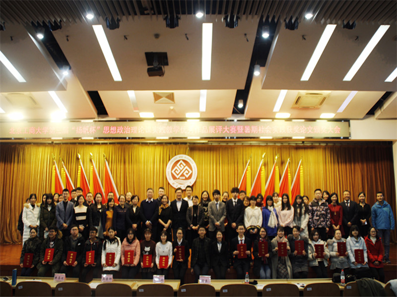 思想政治理论课实践教学优秀作品展评大赛暨2018年思想政治理论课暑期社会实践优秀论文颁奖大会在良乡校区举行。马克思主义学院院长王鲁娜、副院长姚洪越,校团委范文昕老师、教务处孙壮老师、学院全体思政课教师、参与现场展示的16个小组全体成员以及2018年暑期社会实践优秀论文特等奖、一二三等奖的小组代表参加大赛。各院系学生代表近200人观摩了参赛作品展评并参与现场实时投票。