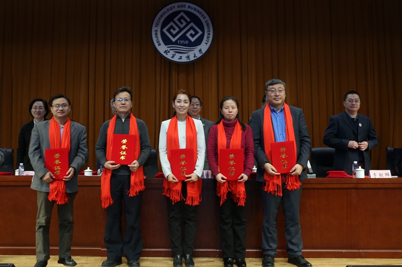 1月15日,学校2018年度科学研究与学科建设总结表彰大会在阜成路校区召开。学校领导孙宝国、张德玉、谢志华、李朝鲜、张耘、郑文红、贾英民、方德英、董竹娟出席大会,并为获奖教师颁奖。全体中层干部、全体教师党支部书记、各学院教师、学科秘书、科研秘书以及研究生代表参加大会。副校长郑文红主持总结表彰大会。