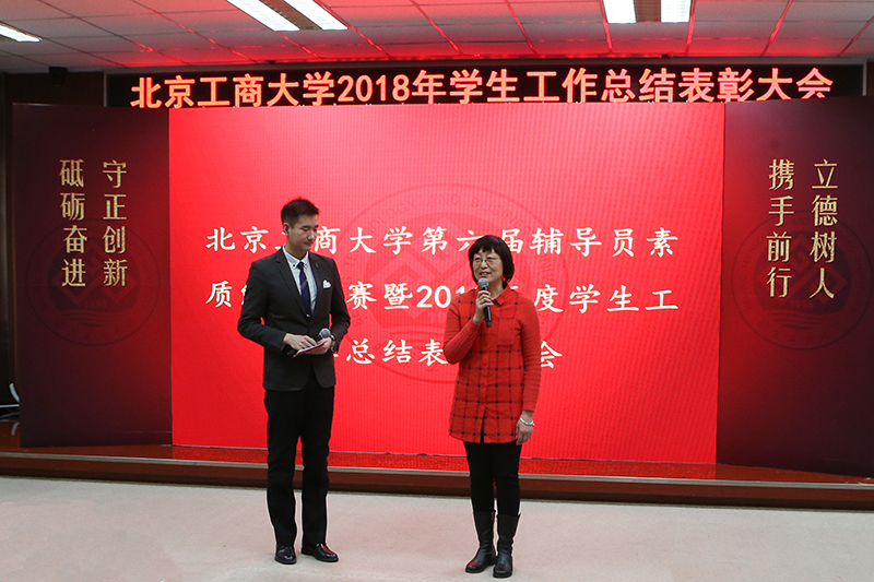 1月22日,学校第六届辅导员素质能力大赛暨年度学生工作表彰大会在阜成路校区拉开帷幕。校党委副书记张德玉,副校长李朝鲜、张耘、郑文红,党委副书记董竹娟出席活动。北京高校思想政治工作研究中心办公室常务副主任屈晓婷、北京师范大学学生工作部副部长、原教育部辅导员培训基地执行副主任王显芳,学校各职能部门、学院党政领导应邀担任大赛评委。