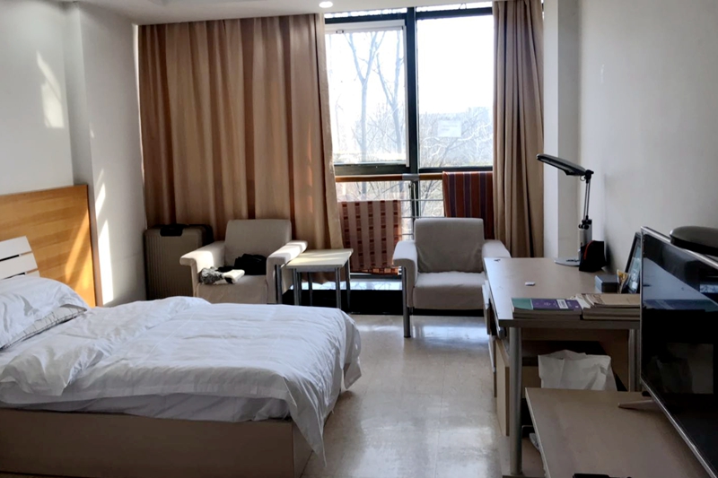 新的留学生公寓参照阜成路国际公寓的硬件配备与管理模式,房间相较阜成路的国际公寓更加宽敞,达到约30平米,而且采光更加充分。为加强沟通交流,吸引阜成路留学生入住,公寓正式运营前两周,宿舍管理科特别向留学生开放参观,学生均对房间表示满意。3月13日,来自乌兹别克斯坦的SHERZOD RIKHSIEV兴致勃勃参观完新宿舍后,早早与来自老挝的室友PHOMMARIN TANGMEK选定了心仪的房间。