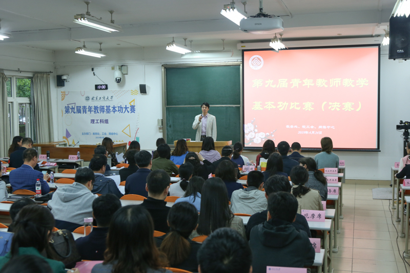 4月24日下午,由教务处、校工会和网络中心联合举办的学校第九届青年教师教学基本功比赛在阜成路校区举行。来自11个教学单位的18位青年教师通过学院的预赛和复赛最终进入学校总决赛,一展教师风采和教学实力。学校副校长谢志华、郑文红分别到文科组和理工科组决赛现场观摩并讲话,240余名教师和学生代表观摩了比赛。