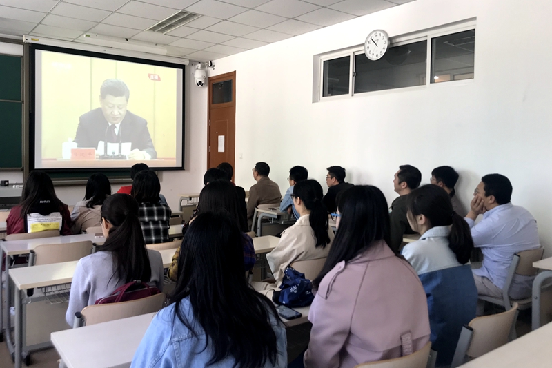 学校党委理论中心组成员集中收看了大会盛况,机关党委、各分党委、党总支、直属党支部根据学校党委的通知要求,结合工作情况,认真组织党员、干部和师生员工,在两校区的报告厅、会议室、教室等近20个会场集中收看庆祝大会实况,聆听总书记的讲话,深刻领会五四精神。收看直播过程中,大家聚精会神,悉心聆听,与总书记一起深切缅怀五四先驱崇高的爱国情怀和革命精神,深刻理解五四运动的历史意义,用心铭记总书记提出的新时代发扬五四精神的重要要求和对当代青年的深情寄语。