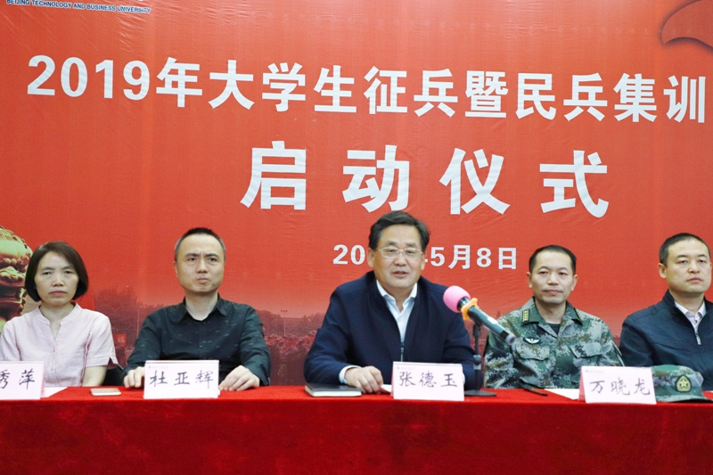 5月8日下午,学校在良乡校区举行2019年大学生征兵暨民兵集训工作启动仪式。西城区武装部政委万晓龙、我校党委副书记张德玉出席活动,学生处处长兼武装部部长吕良、各学院党委(党总支)副书记、征兵专项工作辅导员及100名民兵队员参加活动。