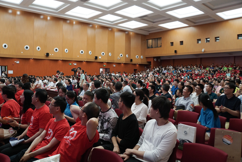 最后,由校友们带来的歌曲联唱《流金岁月》把纪念大会推向了高潮。来自8个学院的85级、95级、05级15位校友共同演唱了《我和我的祖国》《相亲相爱一家人》和《明天会更好》,唱出了他们对于母校的深深眷恋,一时间,台上台下一起互动,动人歌声响彻东区礼堂,不少校友举起相机、手机定格下难忘的时刻。