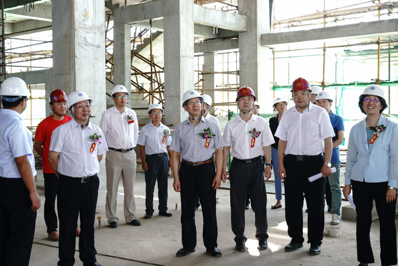 封顶仪式后,各位领导和嘉宾代表参观了学生食堂和学生活动中心的建设情况。本项目涵盖16-02-01和16-02-04两地块内容,分别为01地块学生食堂和学生活动中心主体建筑和04地块足球场和400米田径场内容,食堂及活动中心共计建筑面积16030.5㎡,地下一层,地上三层,局部四层。根据设计方案,可容纳约1400人就餐及600人观演。