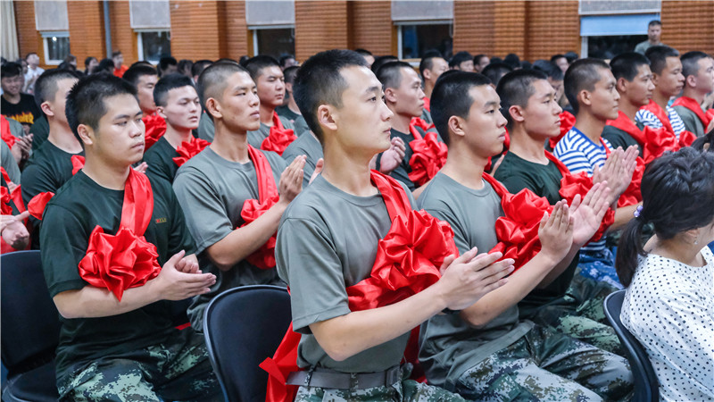 吕良宣读了我校2019年34名入伍男兵光荣榜。在今年的大学生征兵工作中,我校共有74名男生、37名女生积极响应国家号召,报名参军。除34名男生已经顺利入伍外,7名女生进入政治审查环节。2004年至今,我校入伍的大学生士兵人数已达380人。