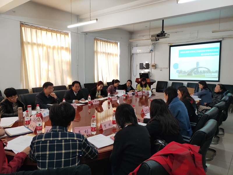 研究生院各科室分类别分层次组织“一系列培训会”, 加强研究生导师队伍建设、研究生辅导员队伍建设和研究生院队伍建设,深化“立德树人”理念,提高工作专业化水平,广泛开展培训交流活动,构建全员育人体系。开展研究生“明德大讲堂”系列讲座,坚定研究生理想信念,提高科学研究能力。