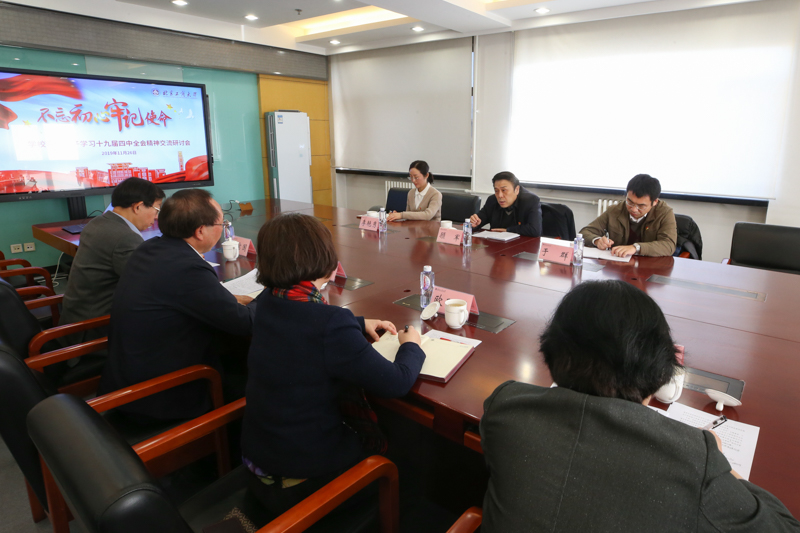 会上,学校党政领导班子成员、党委常委依次围绕十九届四中全会精神,结合学校工作实际,交流了学习的认识和体会。