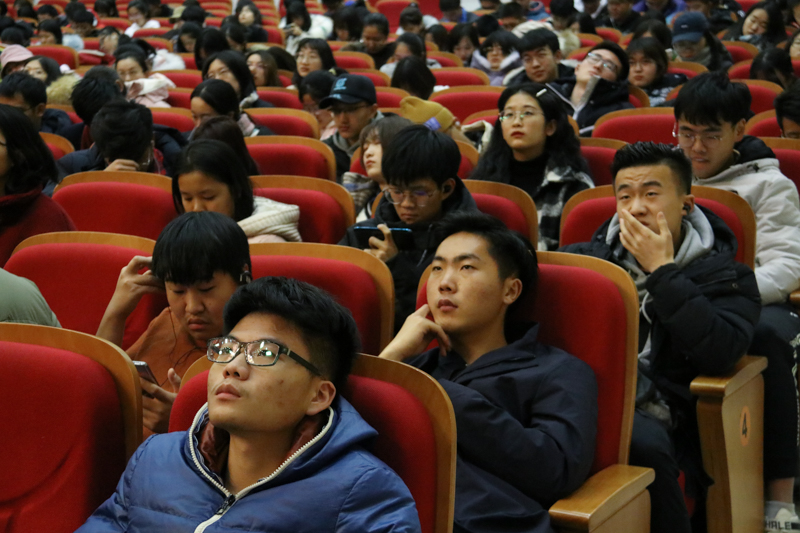 12月12日,杜凡由《道德经》对“道”的定义讲起,从“何为老子的道”、“老子的道所认为的世界观”与“如何用道家思想‘修身、齐家、治国、平天下’”三方面展开生动有趣的讲解。他结合《道德经》中“道大”与“玄德”的选段和亲身事例,具体而生动地阐释了“道之源”。随后他向大家展示三幅道家的十二辟卦图,以道家“剥卦”、“複卦”的循环相生,阐释了“道”运动的规律。“道之形”的讲解更是引起了同学们的兴趣,“道即为妙,妙不可见”是他鞭辟其形后的最终总结。他将《道德经》中关于“柔刚”、“勇怯”、“有无”、“雌雄”、“巧拙”篇目进行详细地讲述,中肯切实地向同学们解释了“道”的辩证世界观。他提到,万物之内皆有“阴阳相生,刚柔并济”,这是中国人内化的精神。经过他幽默风趣的话语,同学们对“中华民族在面对苦难时何以永远充满希望,何以坚忍不拔”的概念有了更深刻的理解。讲座接近尾声,杜凡以“以道修身、以道养身”点名了道在今日的重要作用。道之自然之气,道之平衡之感,道之无为之神是修身、齐家、治国、平天下的至高境界。最后,他总结道:“有才之人,内敛而成大事。”将老子的道的思想转化于生活点滴之中,相信“道”之美会令同学们受益终生。