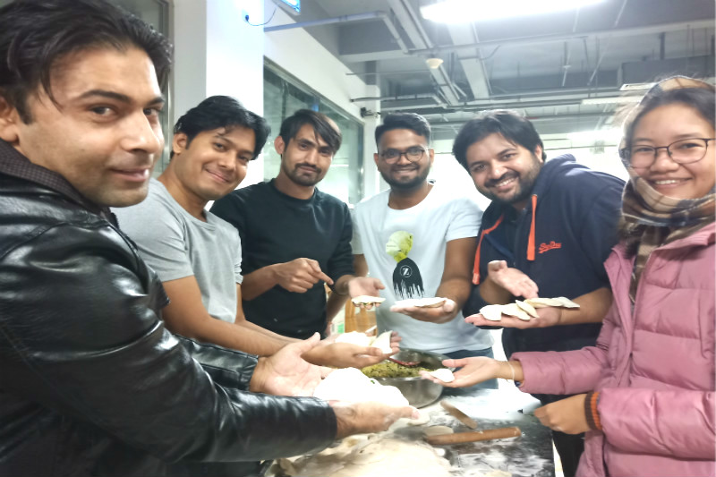 公共事务处高度重视此项活动并做了充分的前期安排和准备,食堂工作人员根据国际学生的需求准备了不同的食材。国际学生们在中国志愿者的帮助下,逐渐掌握了包饺子的方法,大家兴致勃勃参与活动,饺子数量逐渐增多。经过一个多小时的努力,大家吃上了自己包的热腾腾的饺子,一位巴基斯坦的同学还兴奋地向大家展示自己包的饺子,活动现场气氛欢愉。