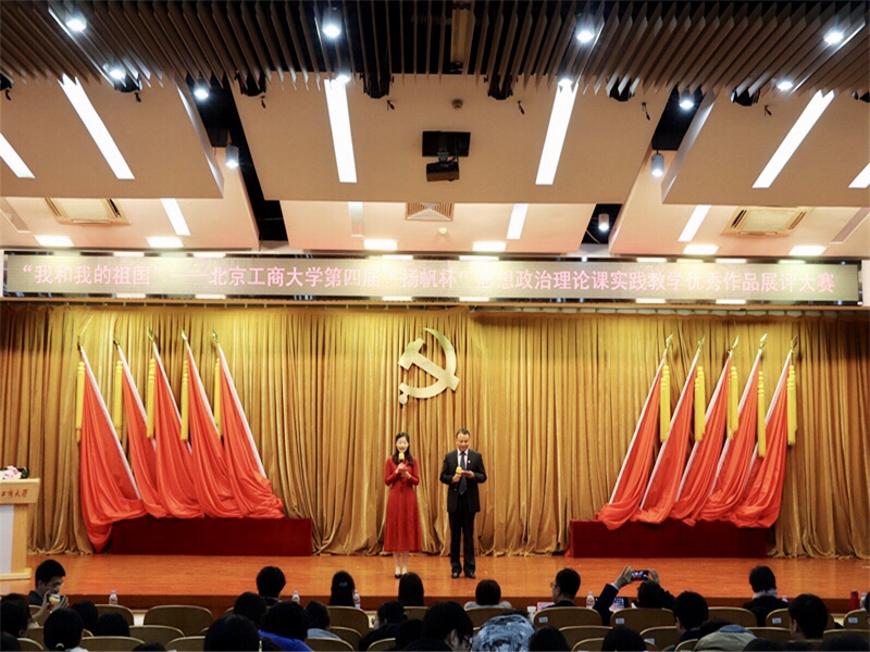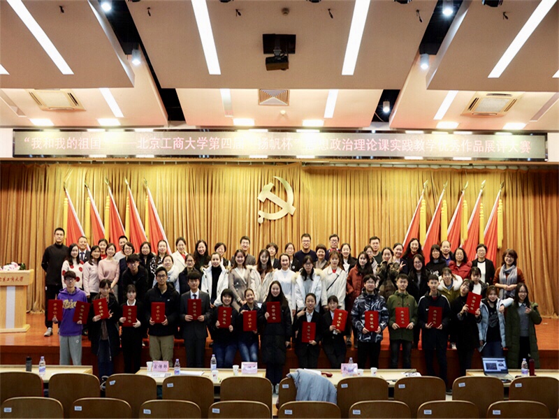 为深入学习贯彻习近平总书记在学校思想政治理论课教师座谈会上的讲话精神,切实落实《关于深化新时代学校思想政治理论课改革创新的若干意见》要求,推进思想理论课改革创新,深化实践教学改革探索,展示和表彰思想政治理论课社会实践优秀作品,12月25日下午,马克思主义学院和校团委、教务处联合举办的“我和我的祖国”——第四届“扬帆杯”思想政治理论课实践教学优秀作品展评大赛在良乡校区举行。我校马克思主义学院院长王鲁娜、常务副书记文四英、副院长姚洪越,党委宣传部副部长杨艳萍,团委副书记孙惟佳等出席会议。学院全体思政课教师以及参与现场展示的16个小组成员参加大赛。各院系学生代表近200人观摩了参赛作品展评并参与现场实时投票。