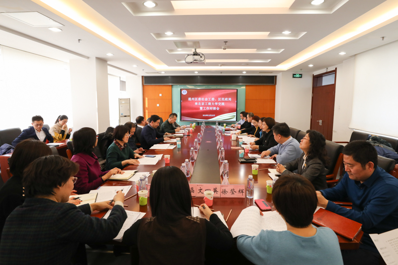 通州区委社会工委副书记李宗秀介绍区委社工委、区民政局基本情况。我校研究生院院长徐丹丹介绍了学校学科建设、研究生人才培养、社会服务等情况;科技处处长左敏介绍了我校科研项目、科研成果及与副中心相关的在研课题情况;学生处处长吕良从支部共建、学生实践等领域展望了合作领域和对接形式。艺术与传媒学院党委书记高丽华、法学院党委书记马韬光、商学院党委书记张春萍分别介绍了本学院的学科专业情况,表示会充分发挥学院优势开展与通州社会工委、民政工作的合作与对接。