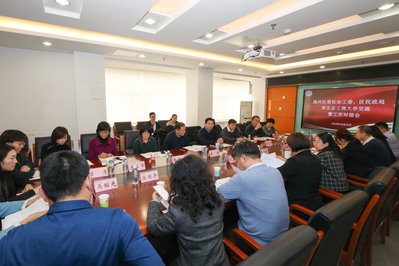 为加快推进北京城市副中心建设,发挥高校资源优势,落实“党建引领,双一流高校助力一流副中心建设”行动计划,12月23日,通州区委社会工委、区民政局与我校交流暨工作对接会议在阜成路校区举行。通州区委社会工委、区民政局领导班子及有关人员一行9人来访并开展交流对接。党委副书记董竹娟出席会议并讲话。党委组织部副部长兼数学与统计学院党委书记武晶晶主持会议。