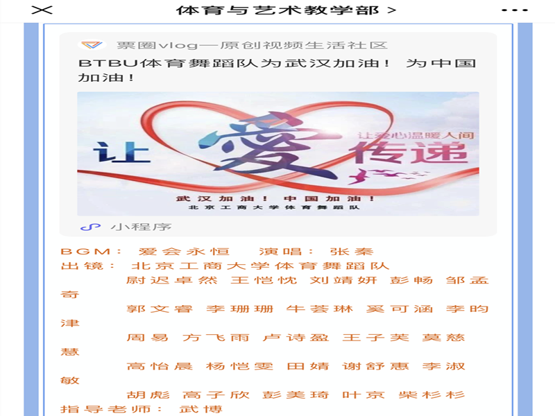 非常时期,蔓延的疫情没有消磨老师们的热情,反而更加激发了大家的创造力,体艺部将以此次疫情期间网络教学为契机,继续推进网络化教学的整体构建,打造特色网络体育教学课程,更好地服务全校师生,助力疫情期间“停课不停教”。