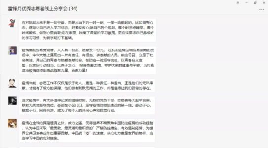 2020年是毛泽东发表“向雷锋同志学习”的第57周年,为贯彻落实习近平总书记对志愿服务工作的重要指示,引导广大青年紧跟党的思想、着力推动学雷锋志愿服务活动深入开展,形成人人践行核心价值观、人人争当新时代楷模的生动局面。在第20个中国青年志愿者服务日到来之际,学校组织开展“弘扬雷锋精神 共行青春岁月”雷锋月线上主题教育活动,引领青年学子传承雷锋精神,真诚服务奉献,将雷锋精神与社会主义核心价值观充分结合,在疫情防控的关键阶段,众志成城,共克时艰。 各学院高度重视,积极响应学校号召并有序组织开展雷锋月线上主题教育活动,充分利用网络空间进行线上学习、交流分享,通过开展雷锋月主题故事交流、优秀志愿者事迹线上分享、疫情防控线上宣传、居家志愿服务、手绘图画、书法创作等形式,引导同学们弘扬雷锋精神,深刻理解雷锋精神的时代内涵和具体内容,在奋斗中奉献自己的青春力量,成为雷锋精神坚定的践行者。 理学院 3月5日起,理学院通过微信公众号共推出9名优秀志愿者事迹,开展线上交流分享会。优秀志愿者们在疫情期间做出了许多贡献,尽自己的努力为社会发光发热。 此次线上优秀志愿者事迹分享会包括志愿心得、志愿服务过程中遇到的困难以及志愿感想等,让理学院全体学生切身感受到雷锋精神就在我们的身边。新形势下深入开展学雷锋活动,大力弘扬雷锋精神,对于凝聚全民族奋发向上的精神力量、培养优秀社会主义接班人、实现伟大中国梦具有重要而深远的意义。 数学与统计学院 数学与统计学院的团员青年以雷锋月为契机,一扫居家隔离产生的低落心情,用自己的实际行动践行雷锋精神,一起度过这个难忘的学雷锋日。各班召开线上班会,传达雷锋精神,并号召大家为抗“疫”行动做一些力所能及的事。同学们积极参与其中,有的运用自己的画笔,画出心中对战胜疫情的美好祝愿;有的则用自己的实际行动,在家里进行卫生消毒;有条件的同学,更是在做好自身安全防护的基础上,参与到了社区的防疫活动中去。 此外,数统学院通过微信公众号发布推送的形式,分享抗“疫”英雄的感人事迹,激励同学们继承和发扬新时代雷锋精神,主动承担起青年学子应尽的责任,努力为国家和社会贡献出自己的力量。 食品与健康学院 食品与健康学院通过腾讯会议平台及“微信”视频通话等方式分组进行在线会议,以青年大学习和青春北京“谁是雷锋”相关推送为学习材料进行学习讨论,分享心得感悟。要求同学们立足当下,向钟南山、李兰娟、火神山和雷神山背后的建设者以及“90”后医护人员等“现代雷锋”们学习,勇于担当、传播正义、知行合一,为打赢这场“抗疫”阻击战作出青年人应有的贡献。 食品192班王晓雨分享了她三月在社区做抗“疫”志愿期间的经历,她表示虽然已经开学,但是只要有较长的课余时间,她依旧会走上志愿者的岗位,为社区居民测量体温,对进出居民及车辆进行登记,她相信,凭借全国人民的努力,一定可以打赢这场战“疫”阻击战。食品191班刘正浩表示,父母都奋斗在一线工作,作为一名大学生自己也应有所行动。他自愿参与社区防疫工作,负责检查出入证、登记人员信息等工作。身在湖北黄冈的田捷希同学感慨到,她见证了其他人只有在网上才能看到的雷锋举动:政府关心问候,发放生活必需品;医生们恪尽职守,不知疲惫;志愿者们顶风逆行,化身为“移动菜场”……这一幕幕使身在疫区的她深深地感受到了什么是雷锋精神。 轻工科学技术学院 轻工科学技术学院积极组织各团支部同学利用课余时间,在网络上开展“弘扬雷锋精神,共行青春岁月”主题教育活动,通过一起学习雷锋故事,讲述自己对于雷锋精神的理解,分享自己身边的优秀志愿者事迹等形式引导同学们学习雷锋精神。在现实生活中,同学们也用自己的行动积极践行并传承着雷锋精神。 应化171班段小溪主动配合家乡的防控指示,积极申请成为疫情防控志愿者,对村口进出人员进行体温量测和信息登记工作,为开展疫情防控工作贡献平凡的力量;环境171班程琰瑞在疫情期间和众多志愿者一起投身社区卫生宣传服务,帮助社区分发卫生手册并引导大家做好防护;环境182班石岩喆主动参加社区防疫志愿服务工作,每天对小区进出人员进行体温量测和信息登记。他们为疫情防控贡献自己的青春力量,在行动中践行雷锋精神。 环境171班崔若琪主动帮助家人分担家务活,还时刻安慰父母,让一家人在疫情期间都保持良好的心态;应化192班殷一心每天都买菜做饭,让劳累一天的父母回家就能吃上热乎饭。还有很多同学在家里主动进行洗衣服、打扫卫生、洗碗等家务活,虽然是小事情,但也是雷锋精神的体现与传承。 与此同时,同学们通过绘画、书法、雕刻印章等作品发出声音,在文艺作品中体现他们对于雷峰精神的理解,用笔锋展信心,用翰墨传真情,积极宣扬雷锋精神,通过这些作品来引导大家学习并体会雷锋精神。 材料与机械工程学院 为引导学生了解雷锋的事迹,把握新时代雷锋精神的时代特征,材料与机械工程学院要求大一、大二、大三学年的各班开展线上主题教育活动。通过绘画、制作小视频、优秀志愿者事迹线上分享会、开展疫情防控线上宣传活动、引导学生帮助父母承担家务等各类居家志愿服务等形式开展活动。 有的同学对社