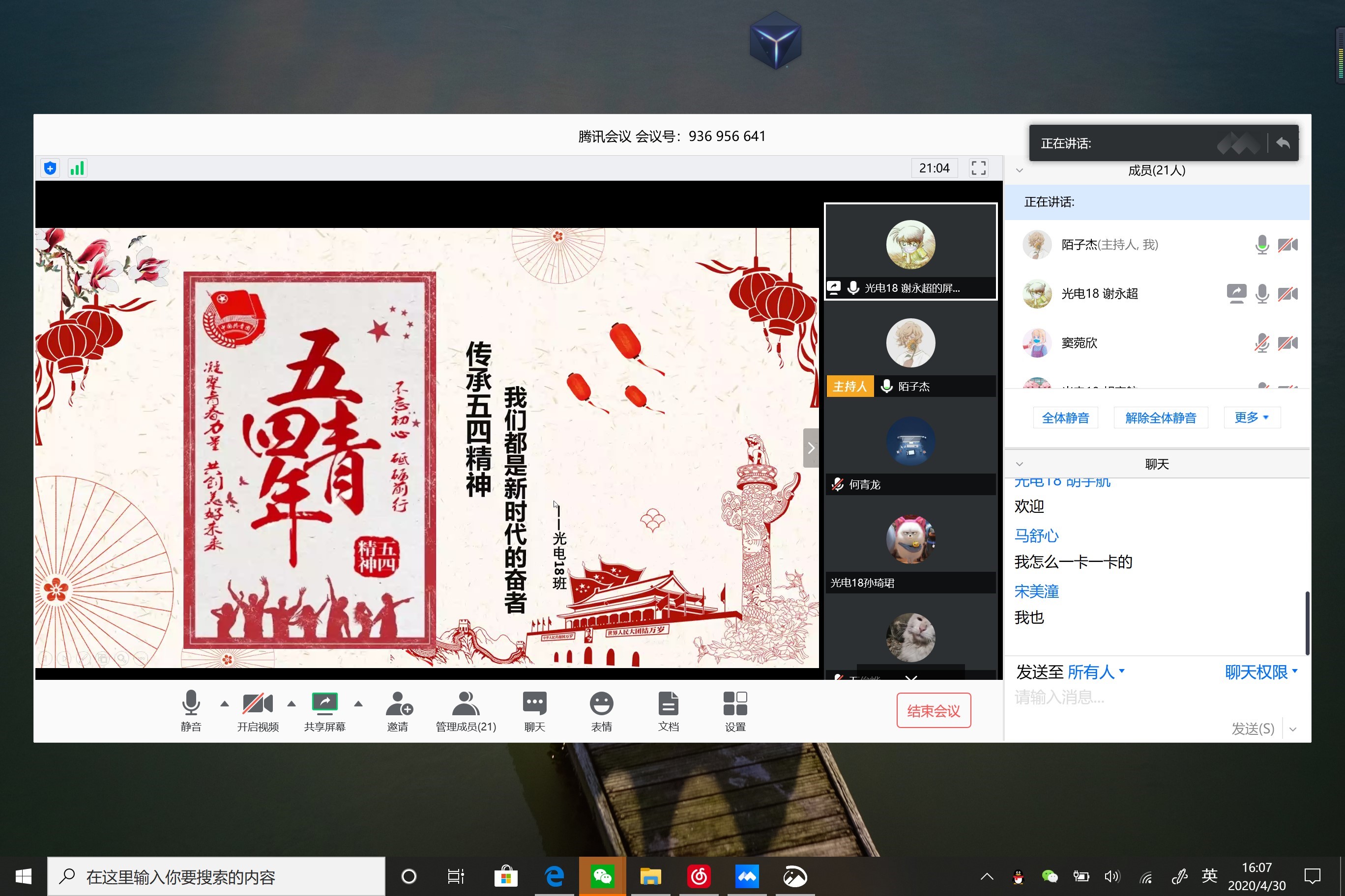 同时,学校团委组织开展“五月的鲜花,青春‘云歌会’”,线上齐唱共青团团歌《光荣啊,中国共青团》,一起回顾那些年我们的青春之音,以此致敬五四,继往开来,一路高歌,点亮青春。
