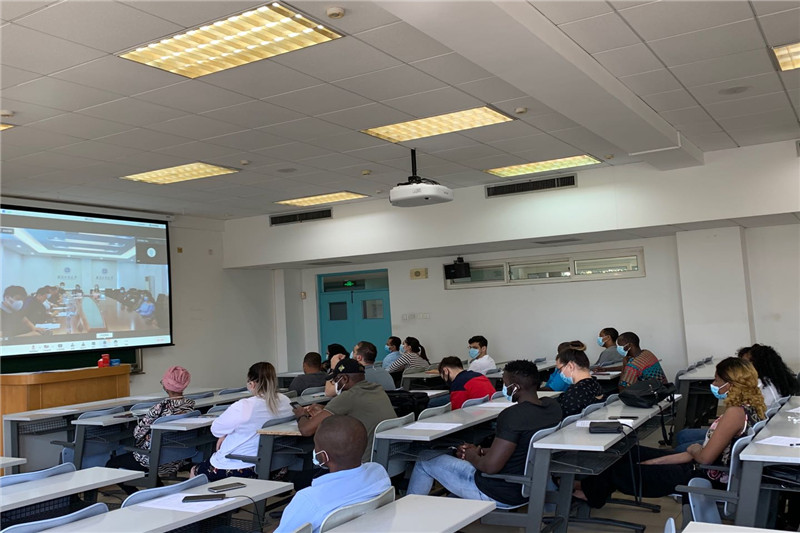 与合作处相关工作人员向同学们普及了疫情防控和新冠病毒的预防知识,并对中国法律法规及规章制度、签证和居留许可管理、奖学金管理、校园及周边情况等学生日常管理内容向同学们做了讲解,同时对教学规定、考试纪律、考勤制度等学校教学要求进行了说明。国有资产管理处和公共事务处工作人员对国际学生公寓的住宿管理制度和收费制度、配套服务及实验室安全制度方面进行了介绍并对同学们提出具体要求。
