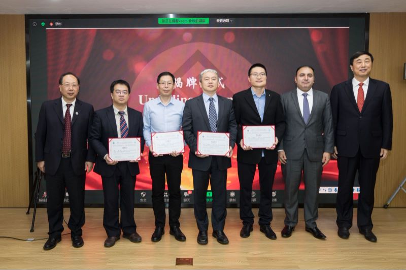 揭牌仪式环节,宋军、黄先开和拉赫曼共同为联合培训中心揭牌,并为专家代表中国工业经济联合会企业社会责任促进中心主任王晓光、ISO26000利益相关方全球网络专家委员会委员郭毅、凤凰卫视《龙行天下》执行总编张洪福、联合国第75届联合国大会科技报告SDG6学术专家组副组长郑姚闽颁发聘书。