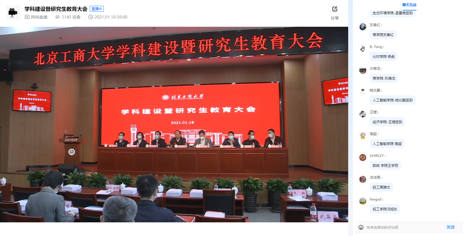 为深入贯彻习近平总书记关于研究生教育工作的重要指示和党的十九届五中全会精神,全面落实全国研究生教育会议精神,努力构建我校学科和研究生教育新格局,1月18日,学校隆重召开学科建设暨研究生教育大会。会议采取线下和线上同步直播方式进行。全体校领导、中层正职、学科负责人和研究生导师代表等70余人参加会议。各学院主管学科和研究生教育副院长、研究生导师、研究生教学秘书等660余人线上参会。党委书记黄先开,党委副书记、校长孙宝国分别主持开幕式和闭幕式。