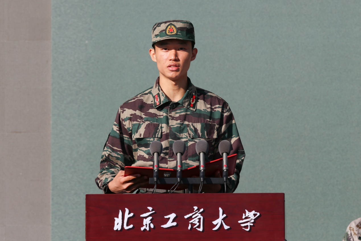 计算机与人工智能学院三营9连2班朱梓纲代表参训学员发言。他表示,要实现中华民族伟大复兴的中国梦,就必须有强大的国防。开展本科生军训,就是要让我们掌握基础军事知识技能,增强国防观念。他代表全体2024级新生保证,将听从指挥,服从命令;传承张思德精神,时刻牢记全心全意为人民服务宗旨;磨练意志,以高标准严格要求自己,注意安全,做到不骄不躁,不气不馁;热爱集体,团结一致,有集体荣誉感;学以致用,将军训所学到的优秀品质与作风延续到以后的学习生活中。