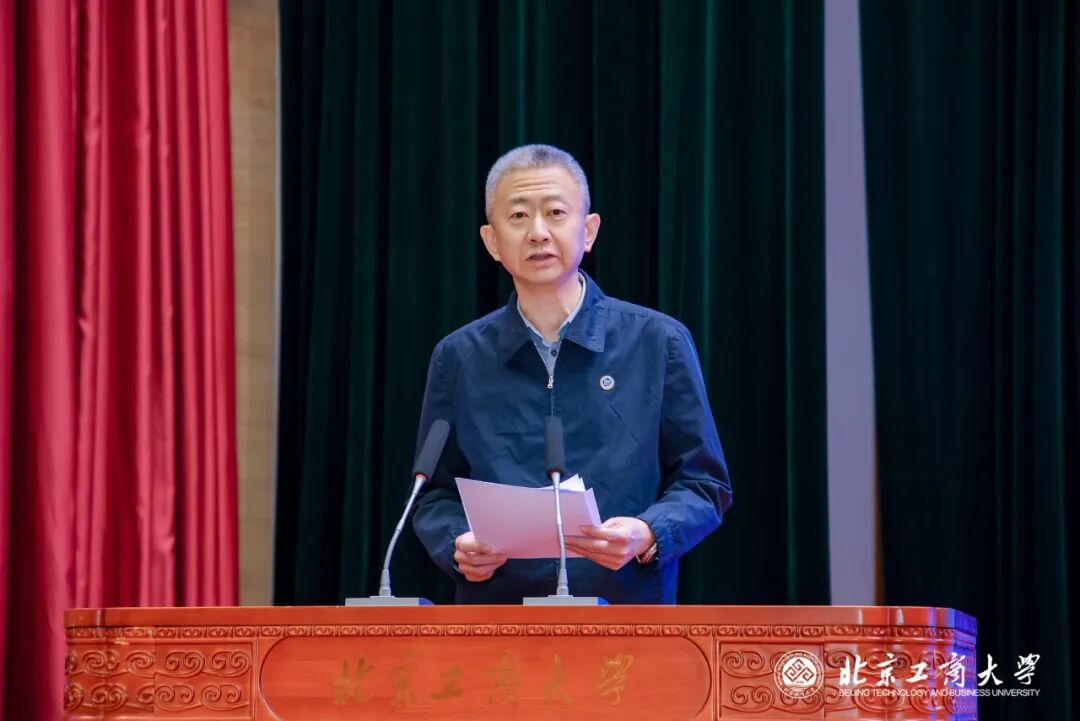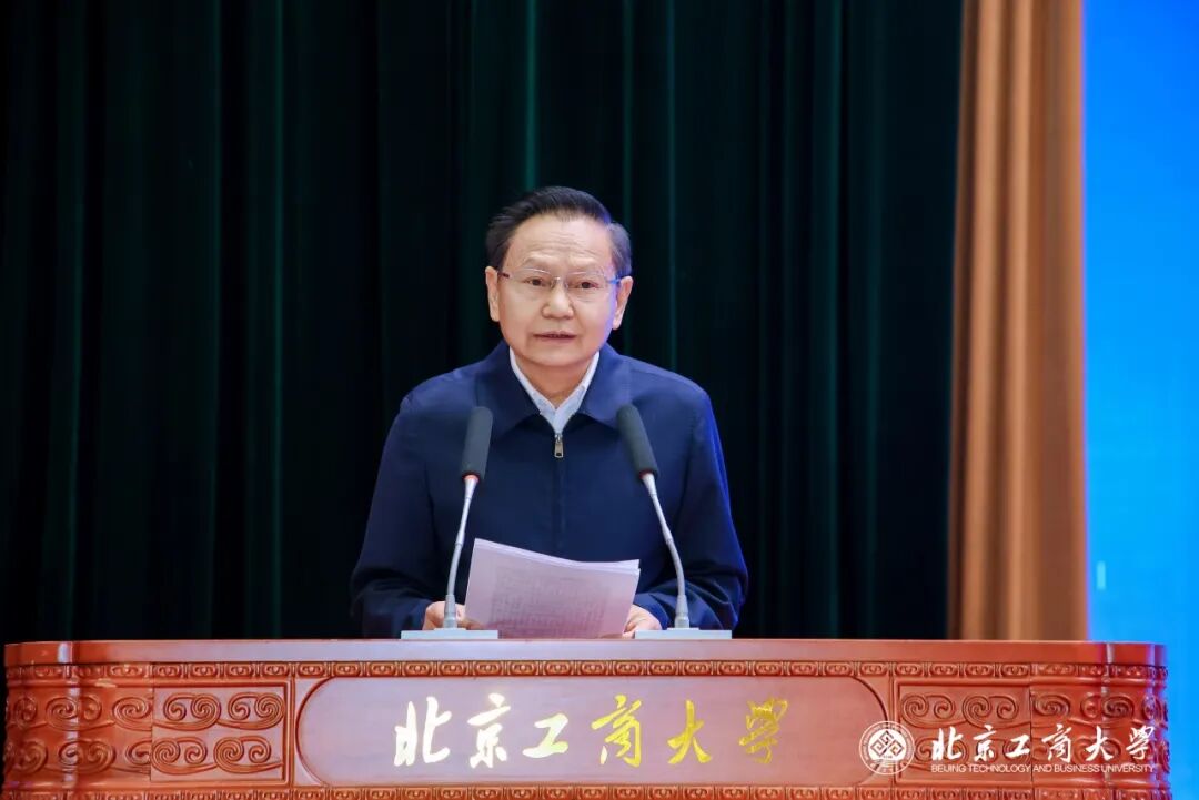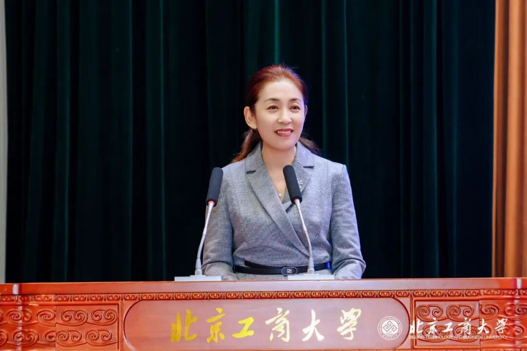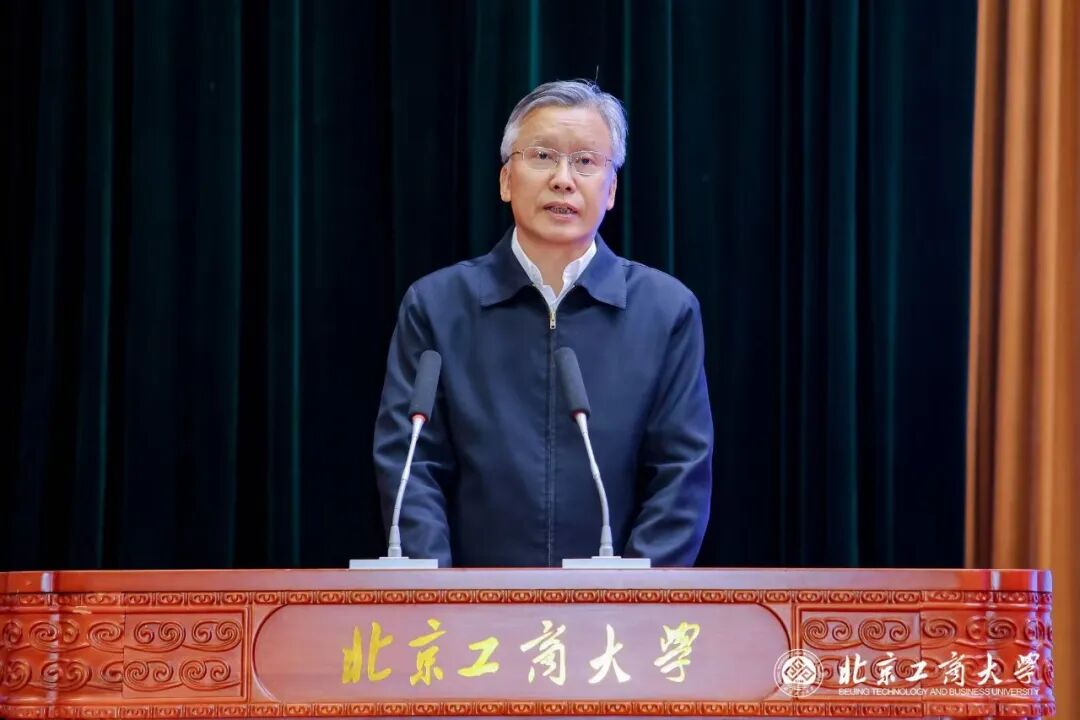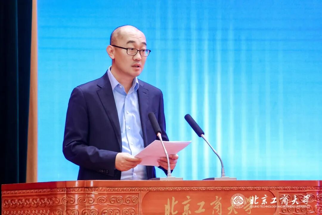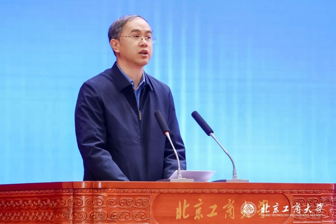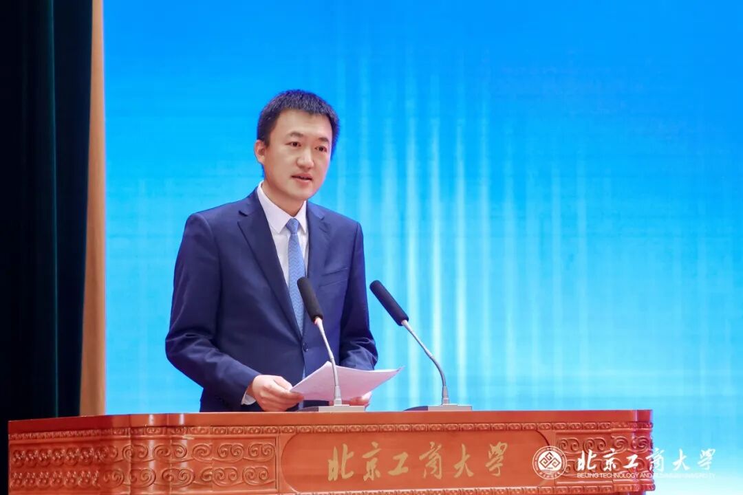 陈仲秋梳理了校地同频共振的发展脉络,提出希望北工商继续发挥学科优势,强化供需对接,共同优化人才培养全流程;希望同学们扎根房山沃土,在实战中成长成才。他表示,房山区政府将竭诚做好服务,让高校安心办学、企业放心投资、人才舒心发展。