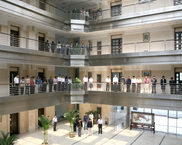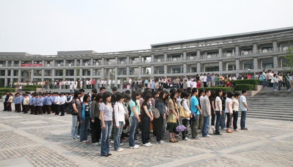 为表达对四川汶川大地震遇难同胞的深切哀悼, 5月19日14时28分起,全校师生面向西南默哀3分钟,同时校车队汽车鸣笛,校防空警报鸣响。