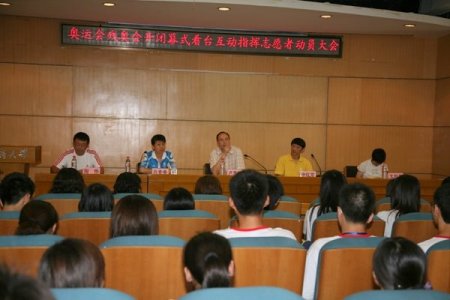7月28日上午,我校在综合楼三层报告厅召开了奥运会、残奥会开闭幕式看台互动指挥志愿者临战动员大会。校党委副书记卢思锋、校团委书记吕素香、资助中心主任徐红京、校团委副书记陶伟、文四英出席了动员大会。大会由校团委书记吕素香主持。
