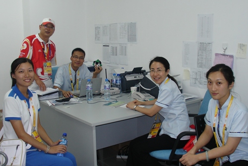 为了满足代表团在时间上的特殊需要,部分公寓楼将本应上午进行的做房工作移到晚上运动员离开之后。直到夜里23点,许多楼里的服务生仍然坚持作业,紧张而有条不紊。在工作人员和各国运动员一起围坐在电视机旁,为奥运会开幕盛典惊叹欢呼的时候,我校居民服务中心的前台服务生们仍坚持值岗,微笑服务,认真履行着自己的职责。