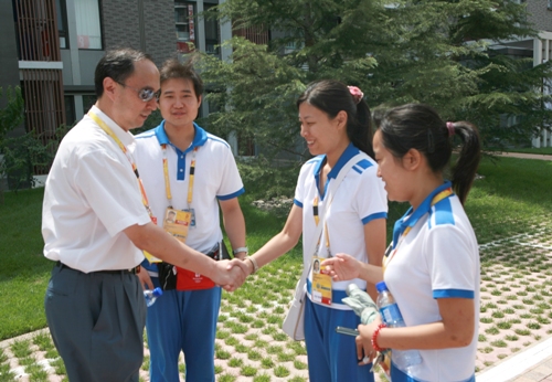8月16日,奥运赛程已经过半,我校党委副书记、校奥运筹办与赛时保障指挥部常务副总指挥卢思锋代表学校领导,赴奥运村看望了我校志愿者。团委书记吕素香、志愿者领队文四英老师陪同并介绍我校志愿者的工作状况。