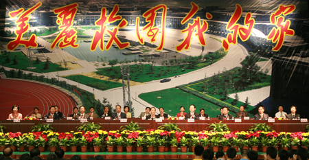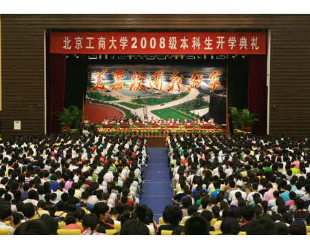九月北京,秋高气爽,9月13日下午,良乡校区文体馆内座无虚席,一张张青春活泼的脸庞充满喜悦和希冀,2008级本科生开学典礼在这里隆重举行。校领导孙尧东、谭向勇、卢思锋、张德玉、孙宝国、谢志华、李朝鲜、王尚忠、张耘以及各院(系)院长(主任)、部分职能部门领导、新生家长代表和3000多名新生共同出席了开幕典礼。典礼由党委副书记卢思锋同志主持。