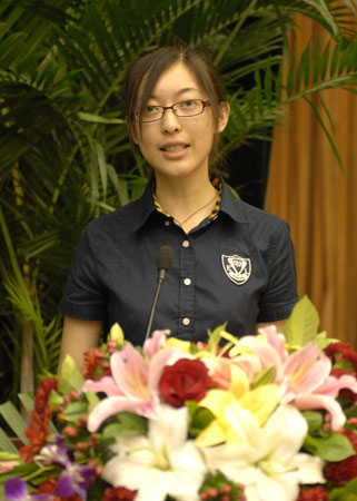 来自商学院的新生方宇迪代表2008级学生发言。她表示将会珍惜在obao欧宝娱乐