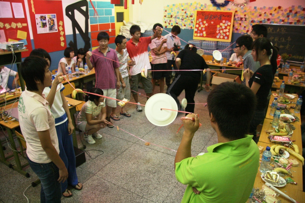 晚会上,服务生们和全体带队老师欢聚一堂,大家在一起做游戏、演节目,其乐融融,共享这个难得的“奥运服务”中秋佳节。最后领队董竹娟向大家致中秋节日贺词,她向因为残奥服务工作任务而不能回