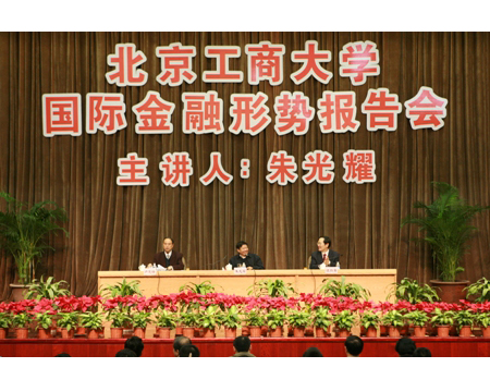 11月5日下午,财政部部长助理朱光耀应邀到我校做题为“国际金融危机的起源、特点、影响及对策”报告。校长谭向勇向朱光耀部长助理颁发了兼职教授聘书。学校党委理论中心组成员、全体中层干部和师生代表参加了报告会。报告会由党委副书记卢思锋主持,许多师生闻讯也赶到会场聆听报告,会场气氛热烈。