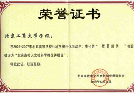 学报(社会科学版)》首次跻身于“北京高校人文社科学报名刊”行列,“贸易经济”栏目同时被评为“北京高校人文社科学报优秀栏目”。这项活动每四年举办一次。