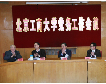 孙尧东同志重点介绍了第17次全国高校党建工作会议充分肯定了改革开放30年来我国高等教育取得的成就、特别是高校党的建设6条宝贵经验和全国和北京市高校党的建设工作会议对做好2009年高校党的建设工作提出的7条要求等有关精神,对做好今年学校党建工作需要注意的问题进行了梳理和强调。他指出,做好今年学校党建工作第一要坚持一条主线——以加强党的执政能力和先进性建设为主线。第二要突出一个重点——开展深入学习实践科学发展观活动。第三要抓好“六个结合”——要把学习实践科学发展观活动与开好党代会结合起来,与干部岗位聘任结合起来,与做好七.一党内评选表彰先进活动结合起来,与圆满完成今年工作任务结合起来,与以改革创新精神加强党的建设结合起来,与创造安全稳定和谐优美校园结合起来。第四要务求实效——要在理论武装党员和师生员工、加强各类培训、坚守意识形态领域主导权上取得实效;要在加强干部的党性修养、弘扬党的优良作风、密切与师生员工的联系上取得实效;要在发扬党内民主、提升服务能力、完善和执行各项制度上取得实效;要在营造良好学术氛围、完善规章制度、严肃政治纪律上取得实效;要在选配好党务工作和学生工作队伍、完善体制机制、落实待遇上取得实效;要在坚持人才强校上取得实效。一定要大力营造尊重知识、尊重人才、尊重劳动、尊重创造的浓厚氛围,让人才心情愉快、无忧无虑、充分发挥聪明才智。第五要加强指导——通过调查研究、交流培训、走出去请进来等多种方式,促进干部群众转变观念、开阔视野、深化改革、创新发展。面对今年学校党建工作任务多、时间紧、要求高的实际情况,他号召全校党员干部一定要以对党的事业高度负责的精神,以对教育事业和学校发展高度负责的精神,以对党员和师生员工高度负责的精神,全心全意、聚精会神、全力以赴做好今年党的建设工作,不断促进学校科学发展,不断提高党务工作者的能力和水平,不断提高党的建设和思想政治工作水平。