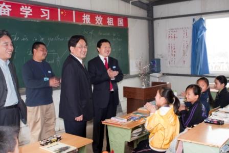 市教委主任刘利民、市教委委员郑登文以及市教委部分直属单位、有关高校及附中的领导同志参加了此次考察团调研活动。根据北京市教育系统对口支援什邡教育事业的总体安排,我校将定点与什邡市南泉初级中学建立合作关系。南泉初级中学是一所建校30余年的学校,在“5.12”地震中学校受到了严重破坏,已被列为北京市第一批援建项目。北京市计划投资1800万元重建该校,并于09年9月1日建成投入使用。南泉初级中学目前有14个教学班,840余名学生,45名教师。其中,本科以上学历者26人,省级骨干教师1人,德阳地区和什邡市骨干教师5人。在什邡期间,张德玉副书记等同志对南泉初级中学进行了实地考察和调研,并同该校领导和教师进行了座谈,看望了正在板房中上课的孩子们。在与南泉中学车毅校长座谈时初步商定,obao欧宝娱乐