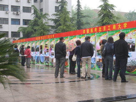 今天前来的外部学校有:中国农业大学、中国政法大学、北京邮电大学、北京工业大学、首都经济贸易大学、首都师范大学、北方工业大学、北京联合大学、北京信息科技大学、北京物资学院、北京第二外国语学院、北京建筑工程学院、北京印刷学院、北京石油化工学院、北京农学院等。其中分数线接近一本线和二本学校显得十分火爆。由于大部分考生分数的集中问题,一些高分的学校很少有人问津。在各学校的专业咨询中,经济和机械类专业依然是今年的热门专业。个别院校还在招生政策上略有调整,比如北方工业大学将不再招收高职学生,邮电大学专业极差改变等。