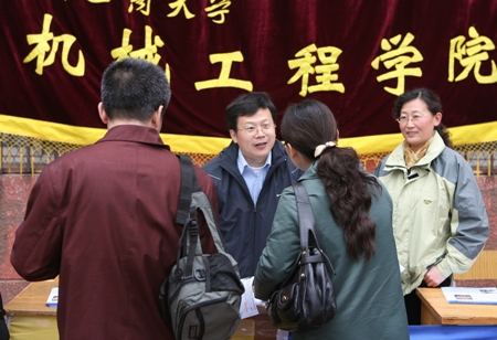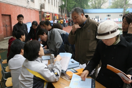 我校各大院系咨询台前的咨询者络绎不绝,兄弟院校的台前也是热闹非凡。中国农业大学的一位咨询老师:“家长和学生基本都是从分数线,就业方向,毕业去向,费用等方面进行咨询,其中也不乏关心出国留学的咨询者。”