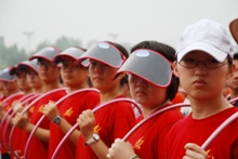 在首先进行的分指方阵训练中,各个方阵步伐统一、动作标准、排面整齐,得到了其他方阵同学的赞许。看台上掌声、赞许声一浪高过一浪。在稍后进行的我校国庆大队合练中,来自六个学院的两千多名同学踏着音乐的节拍,迈着整齐的步伐通过主席台,得到了孙尧东同志的高度肯定。