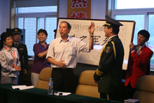9月27日下午,距国庆阅兵、群众游行还有三天之际,校党委副书记卢思锋同志率我校广场合唱团80名师生再次来到阅兵村,与首都各高校、中小学合唱团员同并肩奋战三个月、结下深厚友谊的解放军联合乐团官兵们进行国庆60周年大典前的最后一次合练。