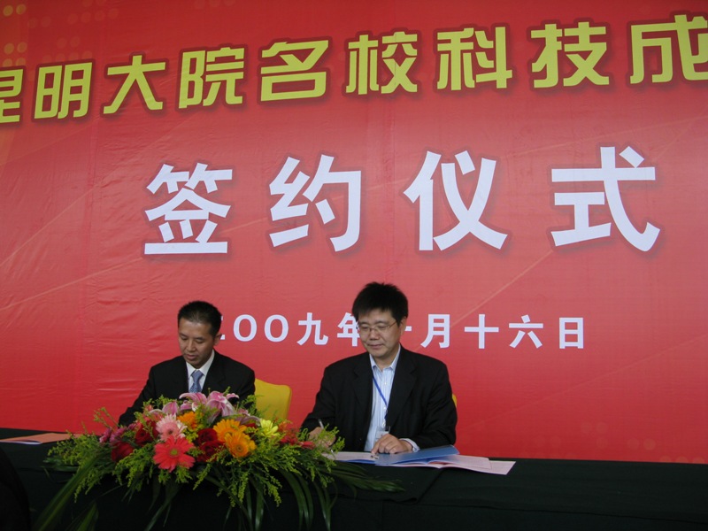 我校作为特邀单位参加了本次成果展示交易会,展示了我校近年来的科研成果。经过成果展示、项目洽谈,我校在展示会期间传出捷报,就药妆产学研与云南白药集团公司举行了隆重的长期合作签约仪式,签约仪式由云南省科技厅主持,我校科技处王国顺处长代表我校与云南白药集团公司常务副总经理黄卫东签订了合作协议。云南白药集团公司常务副总经理黄卫东在仪式上指出,云南白药集团公司正处于大力推进研发和扩大产业链的双重机遇,为了中国药妆产业的发展,云南白药热切期盼与我校合作的顺利进行。化学与环境工程学院董银卯教授及科技处相关工作人员参加了合作仪式。