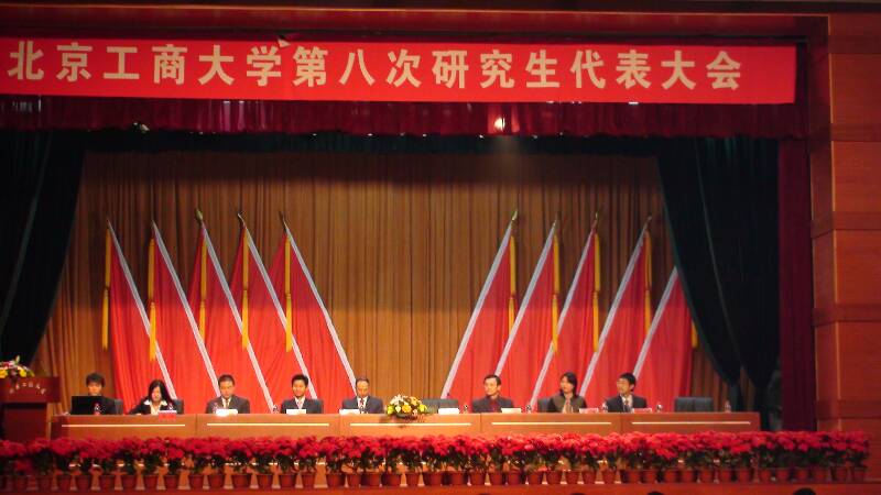 10月25日上午九时,obao欧宝娱乐 第八次研究生代表大会在东区礼堂召开。校党委副书记卢思锋、副校长谢志华、北京市学生联合会执行主席张晓元、校团委书记兼学生处副处长吕良、研究生部副主任莫倩、研究生部党总支副书记熊慧以及全校209名研究生代表出席了大会。来自中国农业大学、北京理工大学、北京交通大学、中国政法大学、北京外国语大学、北京物资学院等27所兄弟院校的研究生会代表参加了大会并在会后与我校研究生会新一届的主席团进行了座谈。