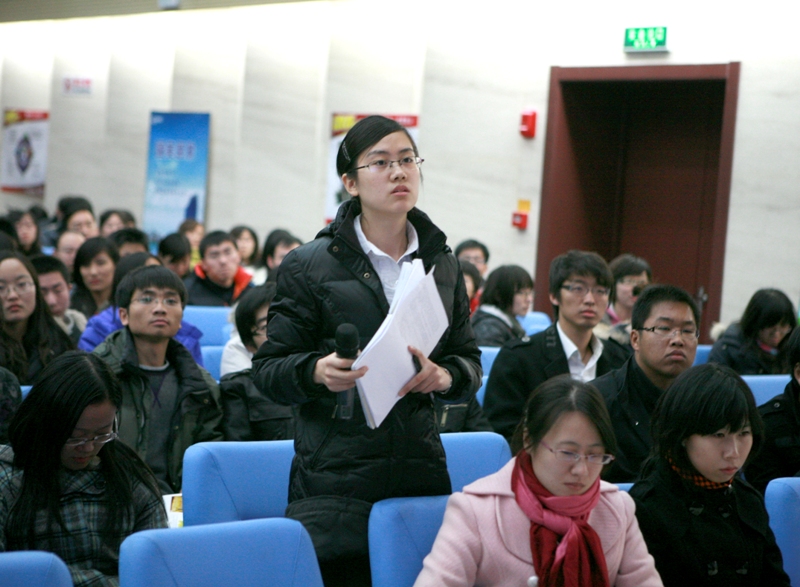 国美的行政总监结合自己在国美的奋斗历程向我们介绍了国美骄人的业绩,艰难的拓展历程,全面的员工保障与关爱体系,丰富的业余文体活动,以及独具特色的“蓄水池”人才培养工程。国美的优越的人才培养计划、良好的企业发展前景以及浓厚的企业文化引起了同学们的强烈反响。