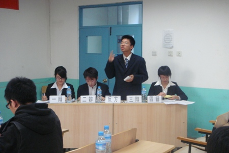 在本场辩论开始之前,我校法学院党总支副书记文四英老师到场致开幕词并观赛,并对辩论赛也进行了指导。