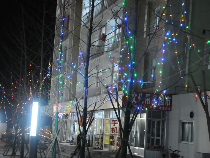 新的一年即将到来,节日的校园灯火阑珊、彩灯闪烁。细心的师生会发现:在良乡校区生活区、阜成路东校区,冬季光秃的树上布满了五颜六色的彩灯,树干闪闪发光,与高挂的灯笼、电子屏幕交相辉映,充满了节日的气氛。这是后勤维修中心的20多名师傅,顶风冒寒、加班加点在圣诞夜前献给全校师生的礼物。1000条彩灯挂满260棵树梢,600米的彩灯缠绕在树干上,彩灯柱、满天星营造了喜庆的节日氛围,为校园的夜晚披上了节日的盛装。