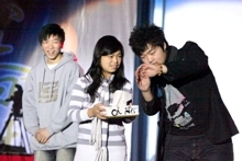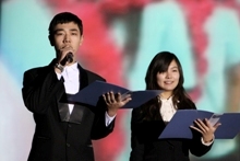 虽然只是在电视机前看过庆祝盛典,刚刚步入大学校门的09级新生拥有着同样的爱国热情。一曲动人的《我爱你,中国》唱出了对祖国母亲的思恋与祝福。演唱者财务091的吴迪用高亢嘹亮的歌喉将歌曲的优美展现地淋漓尽致,她将歌曲的音调和观众的情绪同时带向了高潮。