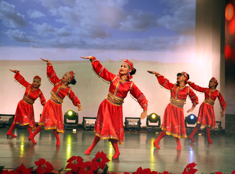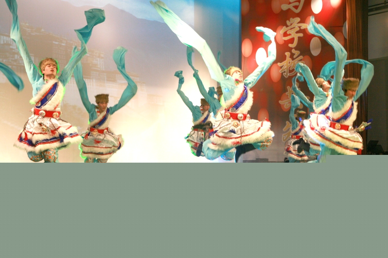 你方舞罢我登场,老师们也不甘寂寞。五名老师身着大红色蒙古服装为晚会倾力奉献了一支《鸿雁》舞蹈。虽然平均年龄达48岁,但老师们在舞台上的一招一式都显得那么青春和专业。从排练到正式演出,期间仅仅20个小时,但老师们今夜将鸿雁般的飘逸与灵动完美地展现在了观众们的眼前。