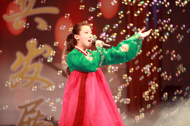 假如在你的印象里“90后”仍是“非主流”、“颓靡一代”的代言人,那么,你“Out”了。由法学09级大一学生自编自演的集古筝、书法、舞蹈为一体的《雪山春晓》以独特的艺术形式展现了中华民族古典文化的恒久魅力,也再次向观众展示了“90后”青春、勃发的精神面貌和优雅情怀。法学092的耿闻捷将古筝名曲《雪山春晓》演绎地淋漓尽致,而法学092的王夺同学更是健笔挥毫写下了“举国欢腾,同庆祖国六十华诞;辞旧迎新,喜迎学校甲子庆典”两行大字。法学092段海霞等同学身着绿衣翩翩起舞,博得全场长久不息的掌声。