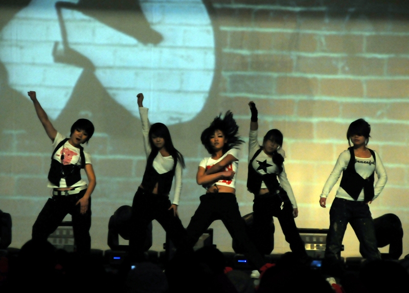 节奏强烈的音乐中,各种炫目的灯光下,来自街舞社、校舞蹈团的十几名舞蹈演员齐聚一堂,大秀舞技,尽情扭动,无限伸展,为全场带来劲爆的街舞表演。舞台上他们充分展示街舞的魅力,舞台下观众的欢呼呐喊声一浪高过一浪,掀起全场一个又一个高潮。