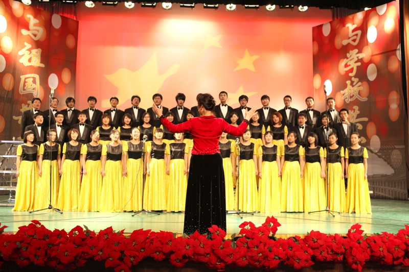 2009年10月1日,由我校师生为主要成员的群众游行第五方阵——“艰苦创业”方阵在长安街上的表现堪称完美。回首过往,天安门前的激昂依然在心中回荡。舞台上,曾经是游行方阵中一员的同学们用最真挚的感情,伴随庄严的红旗颂歌,诵出他们心中对祖国的崇敬。
